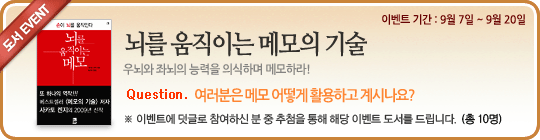 - ★선정자 발표★ [도서이벤트]뇌를 움직이는 메모의 기술 (9/7~9/20)